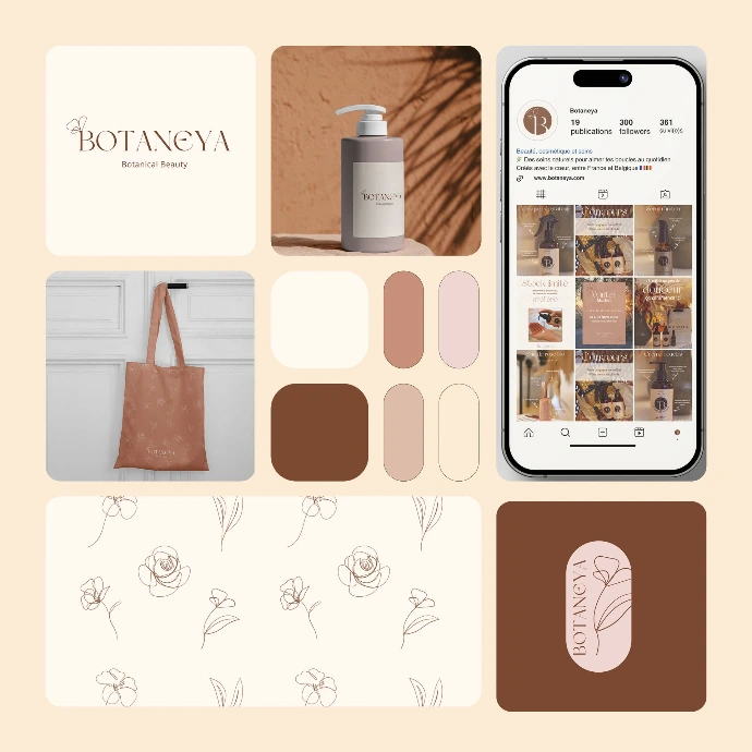 Création d’une identité visuelle sur-mesure : logo, couleurs, typographies, éléments graphiques qui reflètent ton essence et valorise ton entreprise.